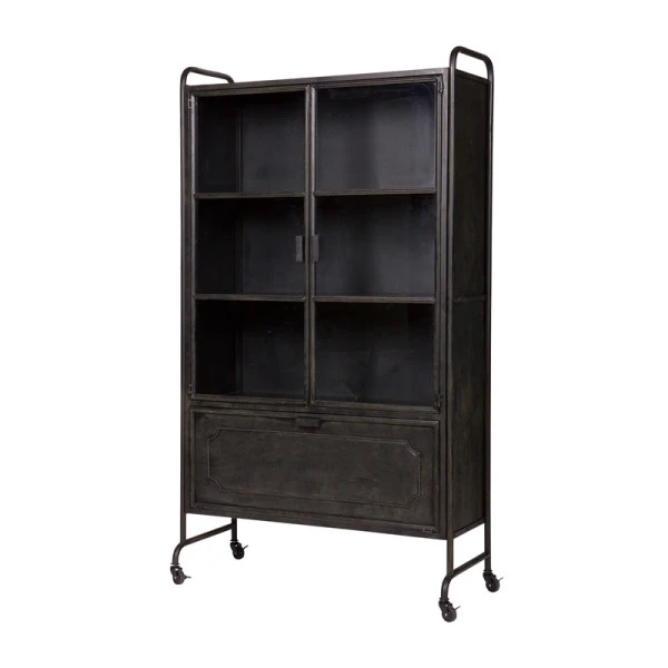 De vitrinekast BePureHome Steel doet het fantastisch in een vintage interieur, maar gaat ook erg goed samen met industriële meubels van metaal. Zet je mooiste beeldjes, fotolijsten of wijnglazen achter de glazen raampjes en geniet van het contrast tussen de kleuren van je accessoires en de zwarte ombouw van de kast! De wielen zorgen voor een speels accent in het geheel.