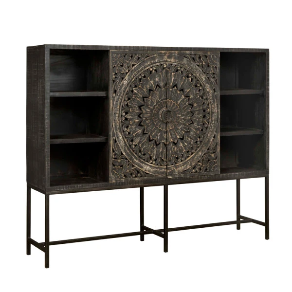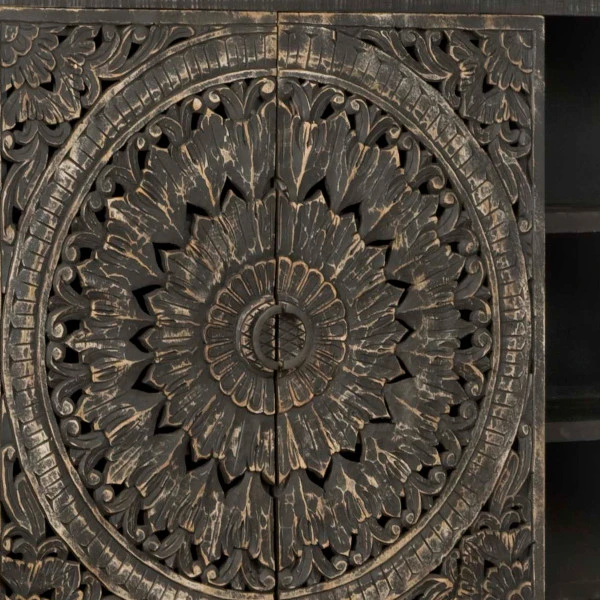- Gemaakt van hout met houtsnijwerk in de deuren