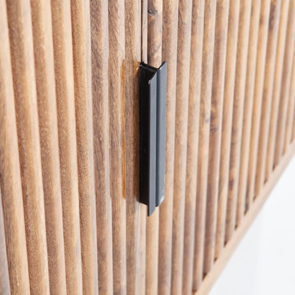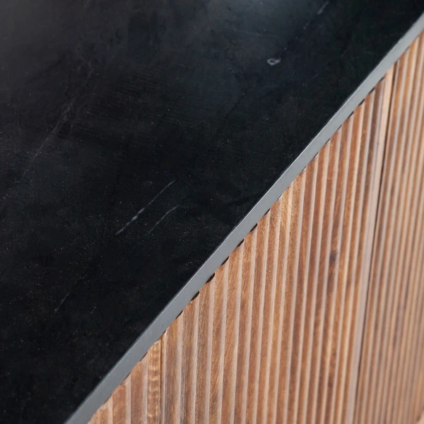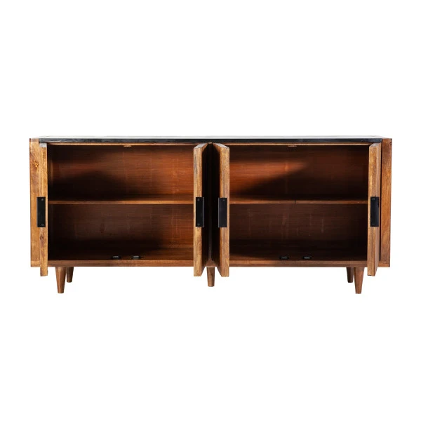 In dit Eleonora Carter dressoir van 191 cm breed is veel plaats voor de losse rommeltjes die anders altijd je woonkamer zo ongezellig maken. Of gebruik het retro dressoir voor serviesgoed in de eetkamer! Het mangohout is geolied voor een prachtig sfeereffect. Bovenop het dressoir pronkt bovendien een blad van zwart marmer: voor een uniek, retro geheel.