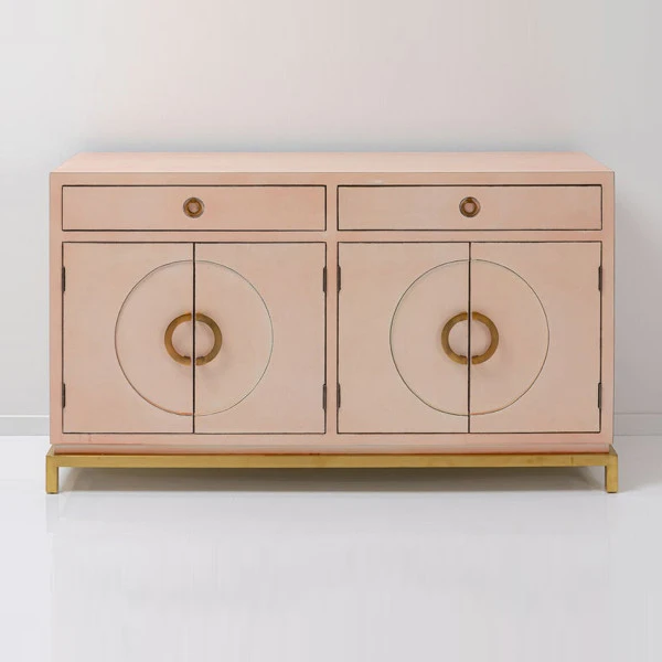 Het Kare Design Disk dressoir is het pronkstuk van je woonkamer. Het roze gelakt hout heeft een gezellige en originele uitstraling, terwijl de accenten van goud voor een luxe effect zorgen. Bijzonder aan het dressoir is bovendien de subtiele, ronde decoratie op de deuren. Vul het dressoir met serviesgoed, spelletjes of administratie en verstel het eenvoudig in hoogte voor de perfecte match met je interieur!