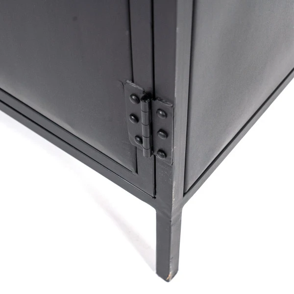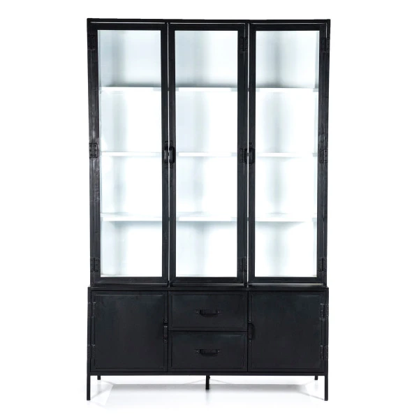 In de Eleonora Industrieel serie vind je behalve deze grote vitrinekast ook een tv-meubel en een kleinere wandkast van zwart staal. De vintage afwerking van het staal maakt dat elke kast zo uit een oud industrieel pand lijkt te zijn gevist!