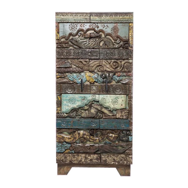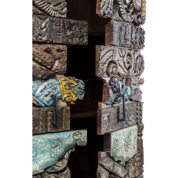 In de wandkast Kare Design Shanti Surprise Puzzle blÃjf je nieuwe details ontdekken! Het ambachtelijk houtsnijwerk is sfeervol en geeft het meubel een authentiek karakter. Met een omvang van 180 bij 85 centimeter vormt de wandkast een opvallende verschijning en dat is maar goed ook: het prachtige snijwerk mag gezien worden. Leuk in de woonkamer voor losse rommeltjes, of als kledingkast op de slaapkamer.