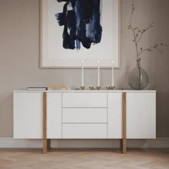 Dit Tenzo Birka dressoir is modern met een speels tintje. De eiken handgrepen en poten geven het strakke design een heel eigen karakter. Berg er alle rommeltjes in op die anders je woonkamer zo ongezellig maken! Voortaan heb je een gezellig huis. De soft-close lades en push-to-open deuren zorgen bovendien voor optimaal comfort. Kies jij voor een wit dressoir met eiken, of vind je antraciet mooier?