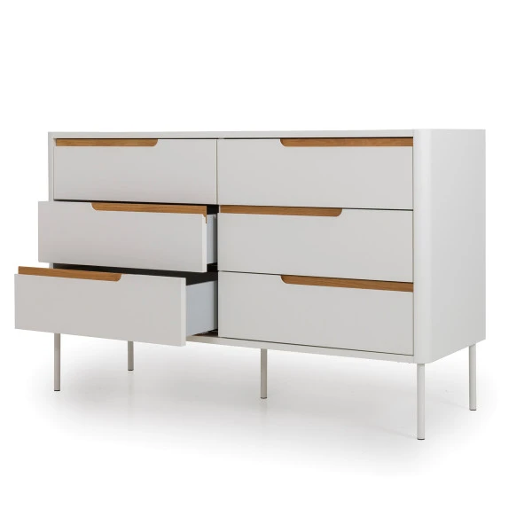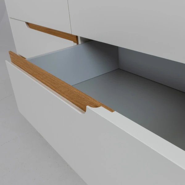 Wat dit Tenzo Switch dressoir zo bijzonder maakt is het speelse design met eiken handgrepen aan verschillende kanten van de lades. Die zijn bovendien voorzien van een prettig softclose systeem. Gebruik het modern dressoir voor sokken, ondergoed en shirtjes in de slaapkamer! Of geef het dressoir een mooie plek in de woonkamer en berg er alle rommeltjes in op die anders maar rondslingeren.