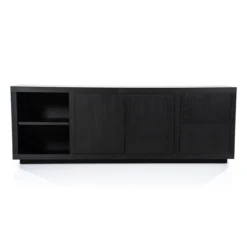 Het Eleonora Helsinki dressoir heeft een modern design, maar de structuur van hout in het zwart gelakt eiken zorgt tegelijkertijd voor karakter. Zet je favoriete boeken in de open vakken en berg spulletjes netjes weg achter de deuren en in de lades. Die werken met een push-to-open systeem dat niet alleen prettig in gebruik is, maar het design ook nog rustiger maakt.