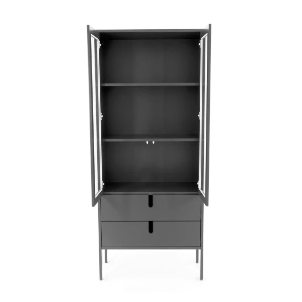 De kasten in de Tenzo Uno serie zijn voorzien van open handgrepen, die samen met de slanke poten voor een speels effect zorgen. Combineer de hoge vitrinekast met een bijpassend dressoir of een kleurrijk tv-meubel, en creëer zo een gezellig modern geheel in huis.