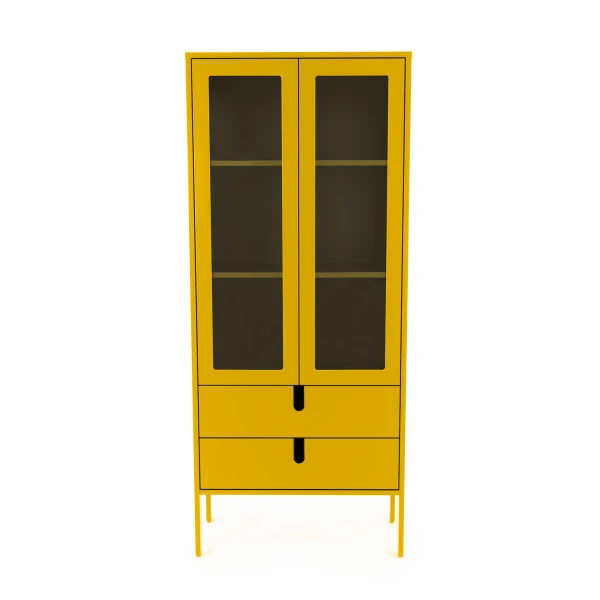 Deze hoge Tenzo Uno vitrinekast heeft een moderne uitstraling met een speels tintje. Een prachtig meubel voor je favoriete borden, soepkommen en koffiekopjes! Of gebruik de hoge vitrinekast in de woonkamer voor leuke decoraties. Je hebt keuze uit 5 verschillende kleuren gelakt hout: wit, groen, grijs, geel of blauw. Welke vitrinekast past het beste in jouw interieur?