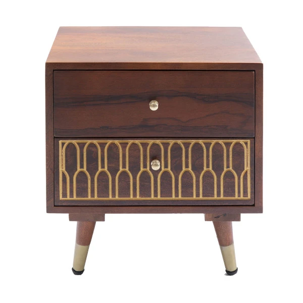 Het Kare Design Muskat nachtkastje straalt een heerlijke retro charme uit dankzij de mix van mangohout en goud. De patronen zijn bovendien met de hand ingezaagd en geverfd! Het nachtkastje is voorzien van twee ruime lades waarin je nachtcrème, tijdschriften en een leesboek kunt bewaren. Ook je telefoon ruim je ’s nachts netjes weg in het nachtkastje: een goede nachtrust begint bij een rustige slaapomgeving!