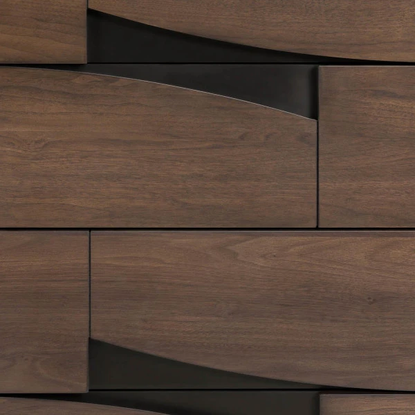 De meubels uit de Kave Home Cutt serie zijn ontworpen door Jordi Dedeu. Je herkent het design meteen aan de details van zwart metaal te midden van het warme walnoot! Deze ladekast is verkrijgbaar in een smalle en brede variant. Ook vind je in de serie een walnoothouten dressoir en tv-meubel.