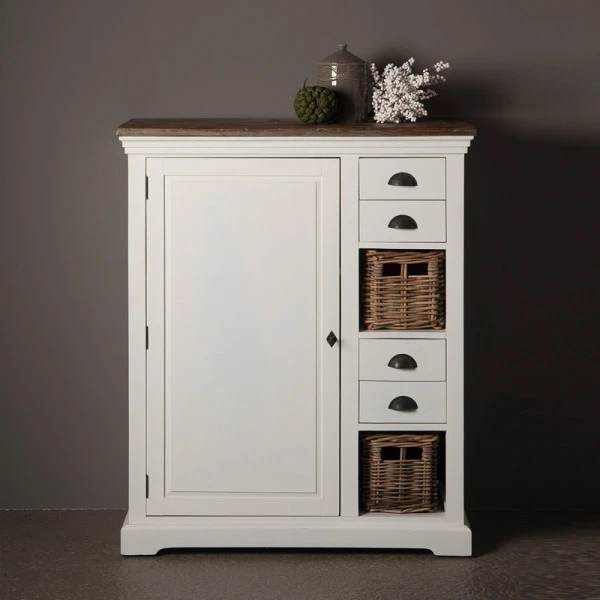 Deze lage Tower Living Napoli wandkast met manden heeft een landelijke uitstraling met een moderne touch: dat komt door de strakke afwerking. Het houten blad en de koboo- manden brengen sfeer te midden van het romantisch wit. Zet de lage wandkast in de woonkamer met een mooie vaas bloemen erop, en berg er losse rommel in op! Of gebruik de kast in de eetkamer voor serviesgoed.