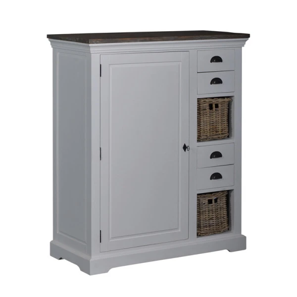 Kenmerkend aan de Tower Living Napoli serie is het gebruik van gerecycled teakhout en mahoniehout, in combinatie met gezellige koboo- manden. Combineer de lage wandkast met een bijpassende salontafel en een landelijke vitrinekast uit dezelfde serie! In de napoli serie kunnen krimpnaden voorkomen.