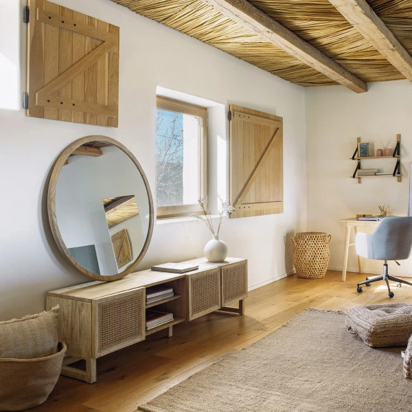 De meubels uit de Kave Home Rexit serie hebben een uniek karakter: elk element van rotan webbing is met de hand gevlochten. Combineer het tv-meubel met een bijpassende ladekast of een dressoir van mindihout en rotan webbing. Zo creëer je een harmonieus geheel.
