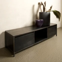 Je herkent de Tower Living Pandora serie meteen aan de mix van metaal en hout. Het hout is gerecycled en straalt veel sfeer uit, terwijl het metaal strak is afgewerkt om een modern- industriële look te creëren. Dit tv-meubel is ook verkrijgbaar in een grotere maat en je vindt in de serie een bijpassende salontafel.
