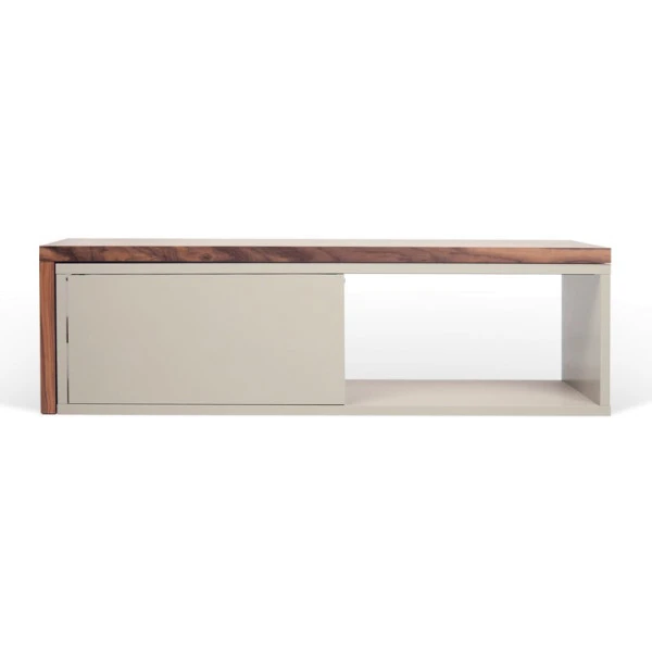 Het uitschuifbaar TemaHome Move tv-meubel kun je precies aanpassen aan jouw zithoek! De walnoothouten module kun je namelijk op verschillende manieren neerzetten. Voor een compact tv-meubel laat je de module op de kast rusten: een speels contrast met het mat grijs. Maar je kunt de module ook helemaal uitschuiven of haaks op de kast plaatsen! Zo creëer je extra ruimte.