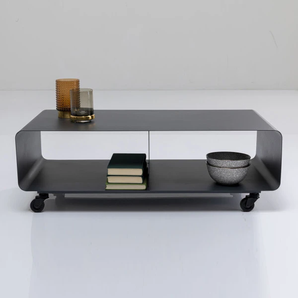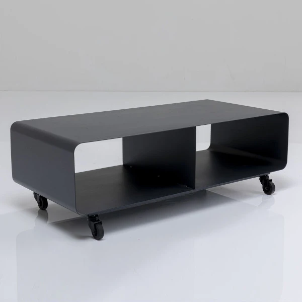 Het Kare Design Mobil tv-meubel is verrijdbaar, zodat je het beeldscherm gemakkelijk kunt draaien naar jouw favoriete zitplaats. Ook rol je het tv-meubel zó even aan de kant wanneer je moet stofzuigen! Het donkergrijs gepoedercoat metaal gaat samen met veel kleuren vloeren en muren. In de twee ruime vakken is plaats voor apparatuur of mooie decoraties!