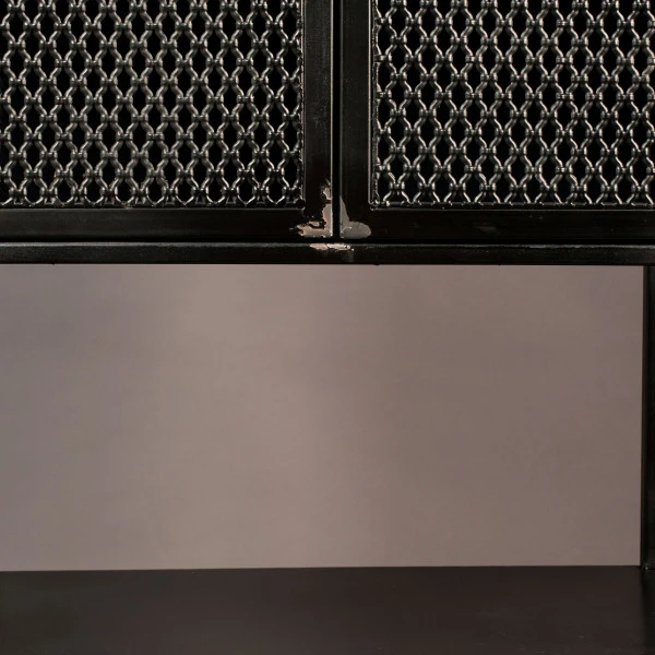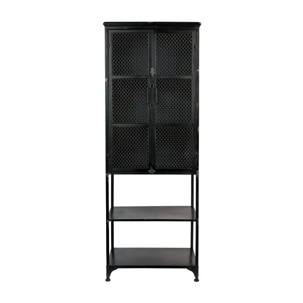 Bijzonder aan de Dutchbone Denver wandkast zijn de zwart metalen deuren met roosters in ruitpatroon: die geven de wandkast een vintage look. Ook de verweerde afwerking van het metaal draagt daar natuurlijk aan bij. Je kunt de hoge wandkast voor allerlei doeleinden gebruiken! Zet serviesgoed achter de doorschijnende deuren en gebruik de open vakken voor je mooiste schalen. Of berg boeken, wijnglazen en tijdschriften op in de zwart metalen wandkast.