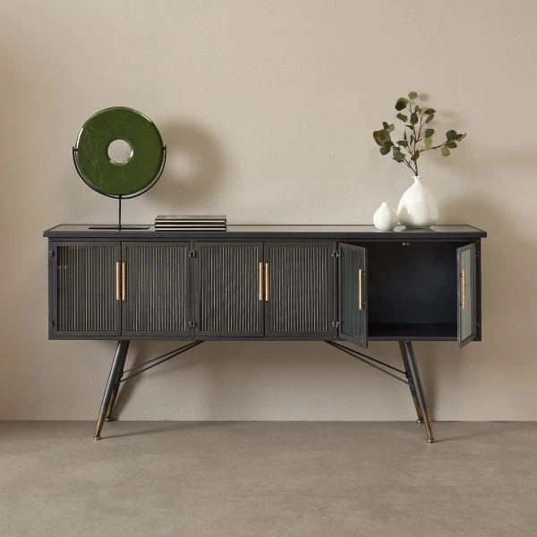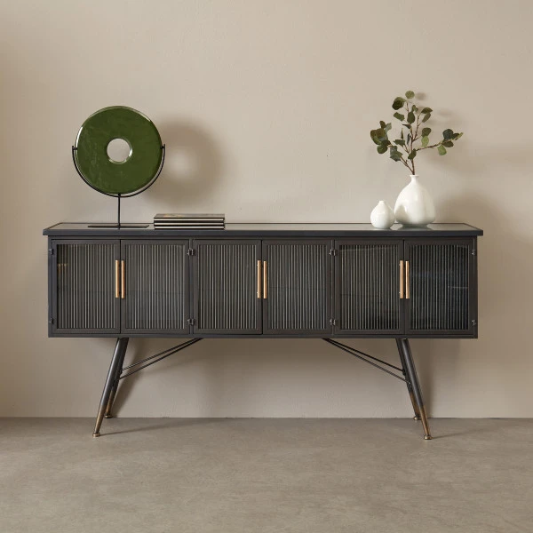 Zwart dressoir geribbeld glas