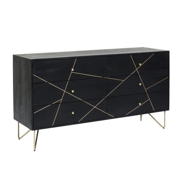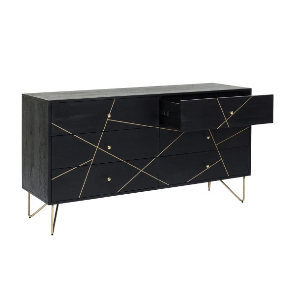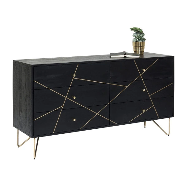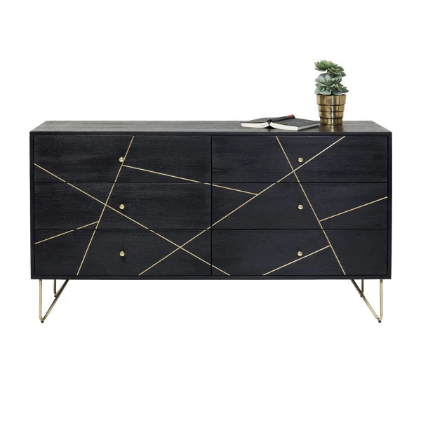 Gebruik het Kare Design Gold Vein ladendressoir voor hobbymaterialen en spelletjes, voor post en administratie, of voor ondergoed en sokken. Met de zes ruime lades kun je alle kanten op! Op het ladendressoir van zwart mangohout is ook nog plaats voor een mooie decoratie. Groene planten of een theeservies uit Japan; maak het zo persoonlijk als jij wil.