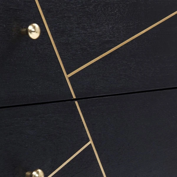 Over dit Kare Design Gold Vein ladendressoir van zwart hout lopen prachtige gouden lijnen, die voor een speels én chic accent zorgen. Ook de messing poten en handgrepen dragen bij aan de stijlvolle uitstraling van het ladendressoir. Het mangohout is zwart gelakt, maar toch zie je het natuurlijke karakter er goed in terug.