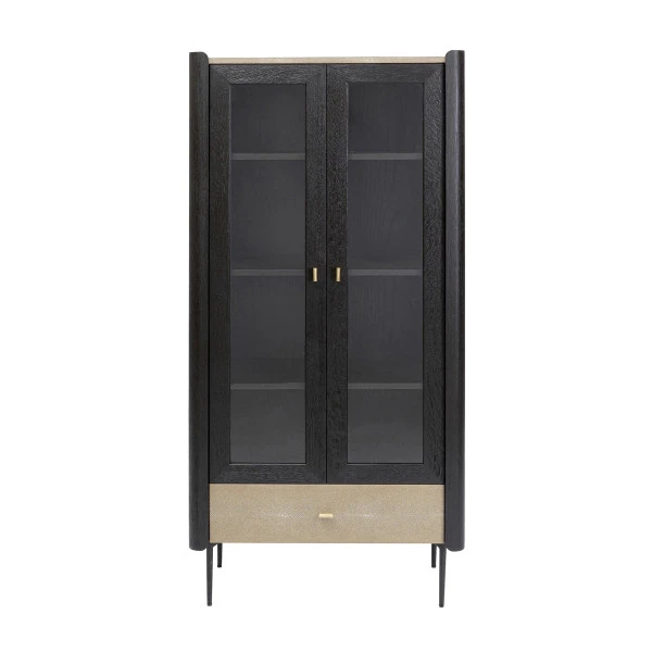 De Kare Design Milano vitrinekast vormt het pronkstuk van je woon- of eetkamer. Afgeronde hoeken geven de kast een zacht karakter. Tegelijkertijd zorgt de mix van materialen voor een speels geheel! Gebruik de zwarte design vitrinekast voor serviesgoed of zet er bijvoorbeeld boeken en kunst in. Ook fijn: de deuren en lades sluiten met behulp van een soft-close systeem.