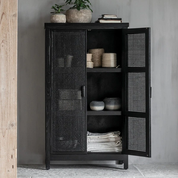 Bij de Must Living Provence kast heb je keuze uit drie varianten. Deze kast heeft een volledig zwarte afwerking, maar je kunt ook kiezen voor een zwarte kast met naturel rotan deuren. Of is de naturel houten kast jouw favoriet?